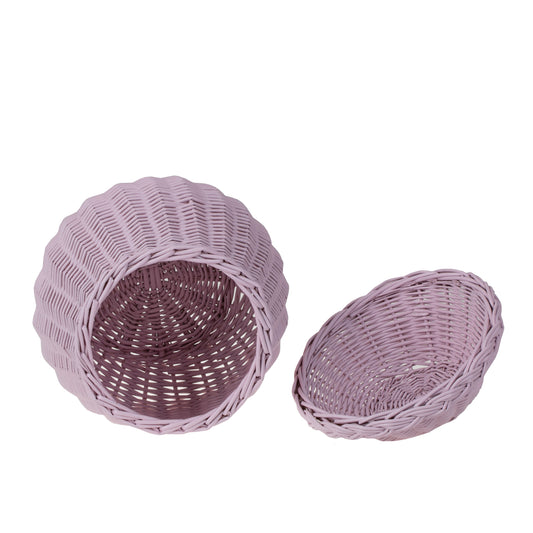In de slaapkamer of hal dient het als opberger voor sleutels en dagelijkse kleinigheden, en op de kinderkamer voor kleine schatten. Pastelroze geeft het interieur zachtheid en creëert een gezellig, decoratief accent. De kleine afmetingen maken plaatsing op een plank of toilettafel eenvoudig, en het tijdloze vlechtwerk past goed bij boho- en Scandinavische stijlen. Het is ook een mooi decoratief element op de commode of in de badkamer-SPA.