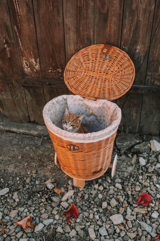 Celtis flettkurv på hjul med kremkant og stropper TheWickerStories