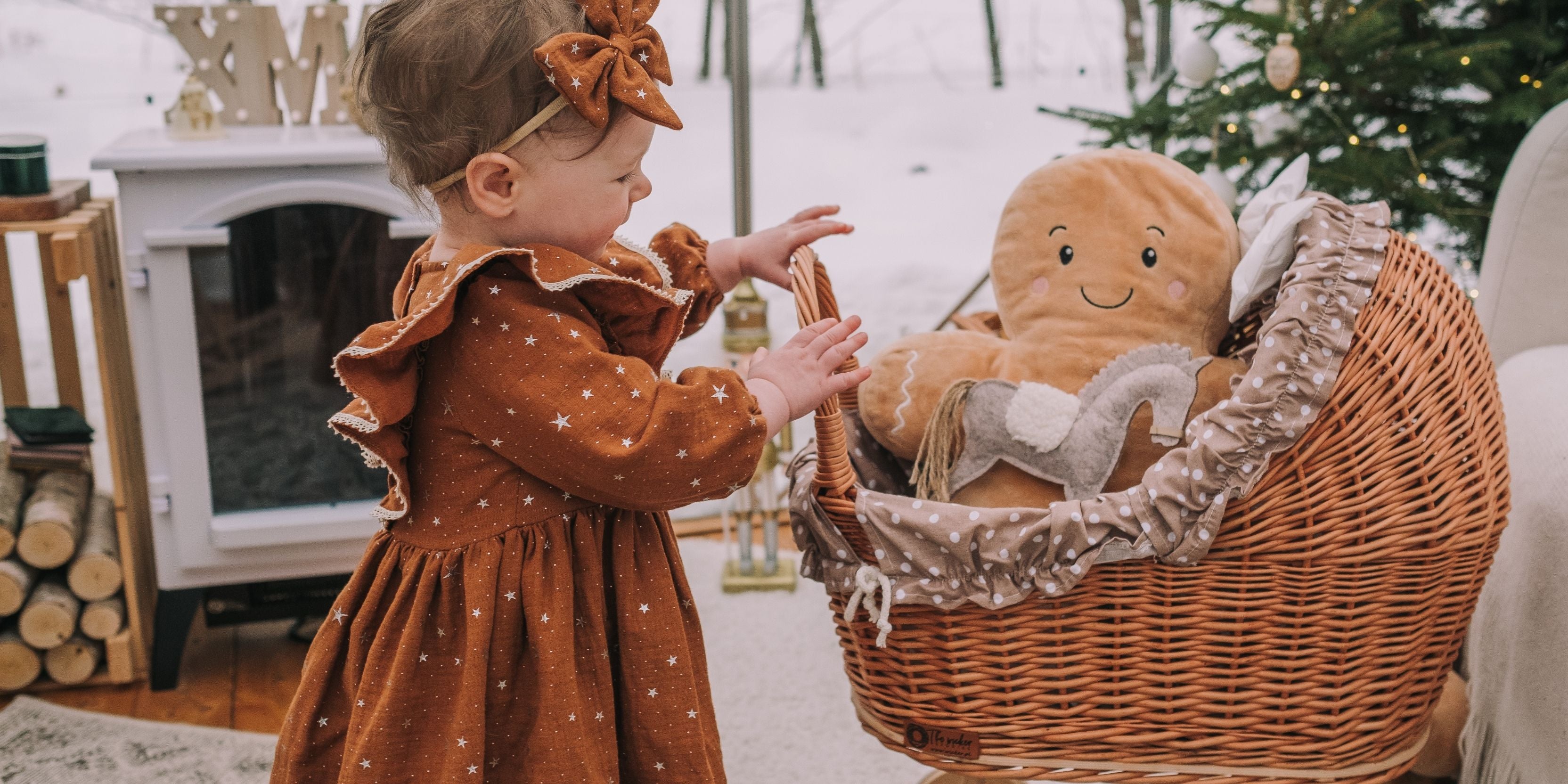 Mimi wiklinowa kołyska dla lalek z personalizacją, różowym obszyciem, poduszką i kołderką TheWickerStories