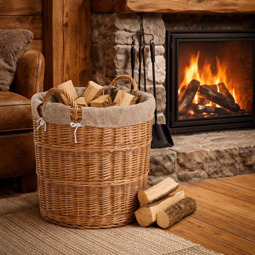 Wybierz solidny, ręcznie pleciony kosz z wikliny – praktyczny przy kominku i na co dzień, trwały, naturalny i gotowy do pracy w Twoim domu.