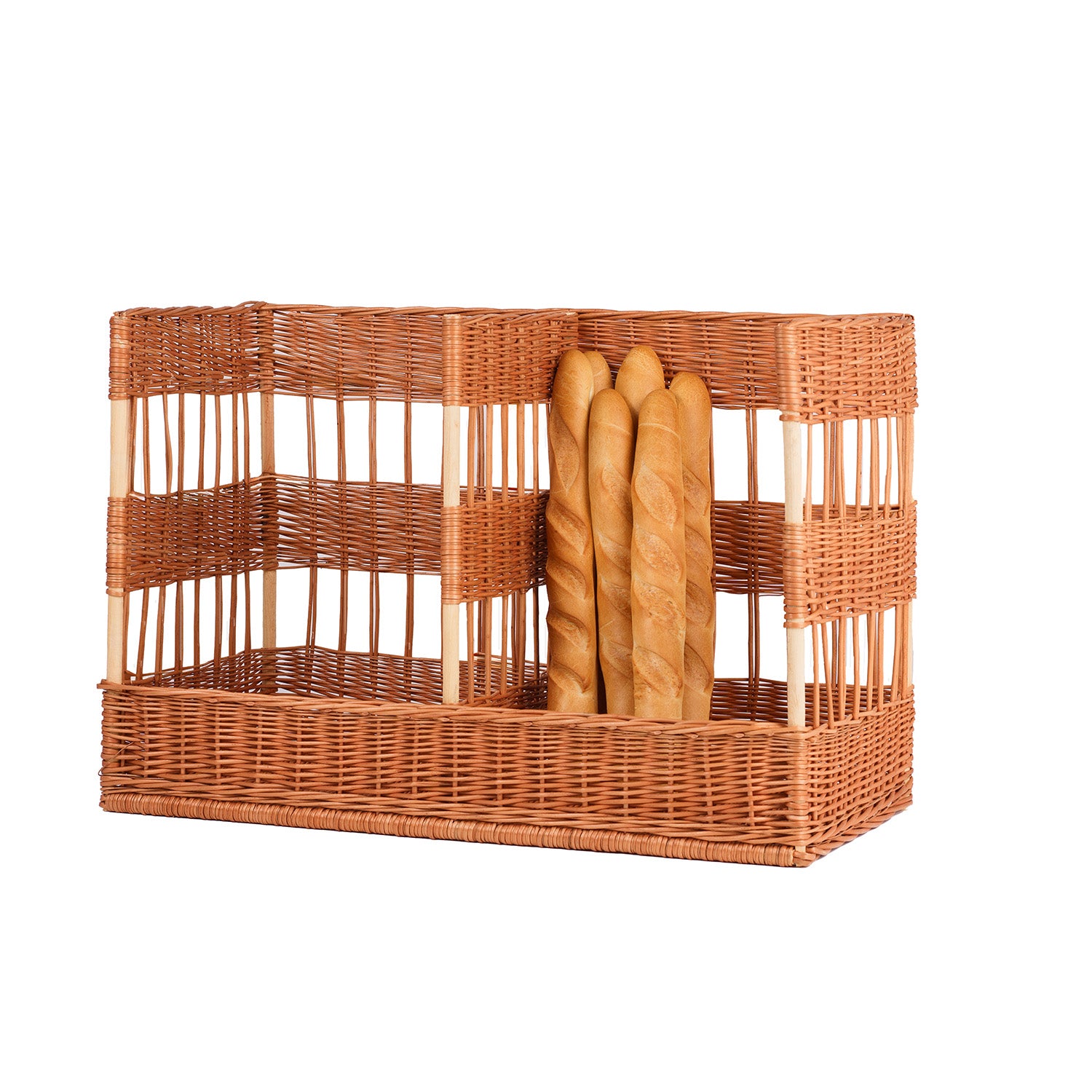Briza wicker double baguette stand for bread display, freestanding TheWickerStories