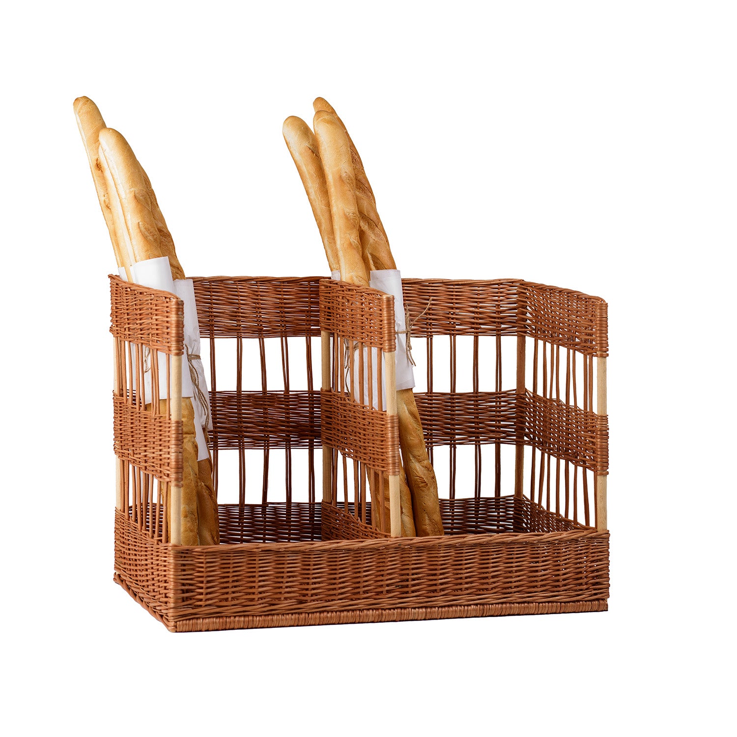 Specyfikacja Twojego Briza wicker double baguette stand for bread display, freestanding TheWickerStories
