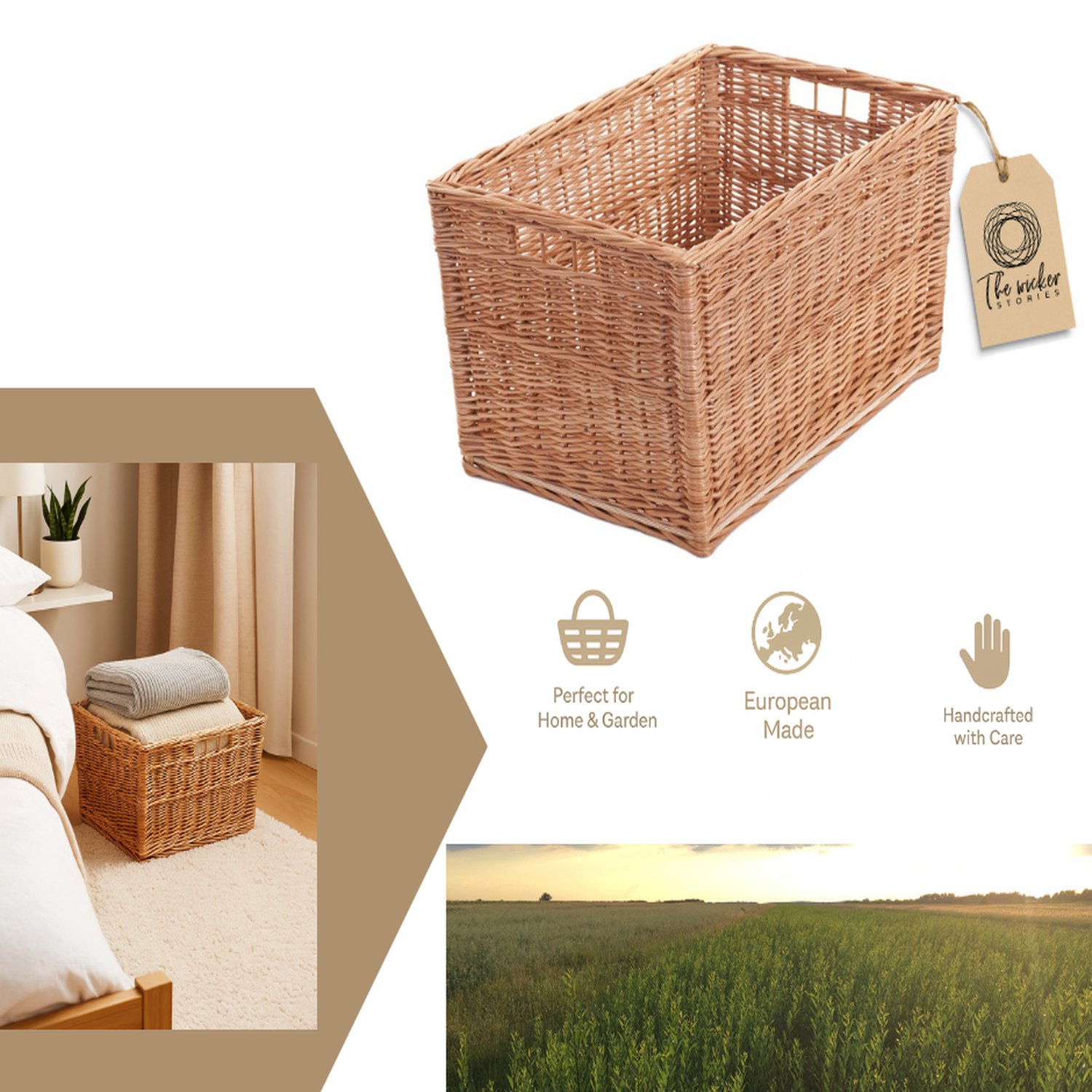 Wykonany z ekologicznej wikliny pochodzącej z europejskich plantacji, kosz jest ręcznie pleciony przez doświadczonych rzemieślników. Naturalny surowiec jest odnawialny, przewiewny i trwały, a przy tym lekki, więc łatwo dopasujesz go do przestrzeni. Brak plastiku i syntetyków sprawia, że to wybór przyjazny domowi i środowisku, a solidny splot gwarantuje długie użytkowanie.