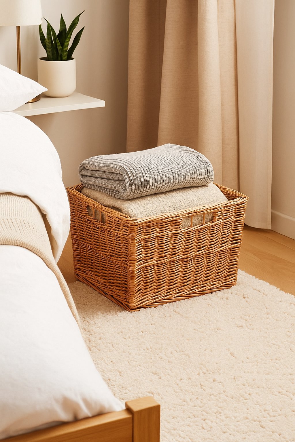 Postaw na ręcznie pleciony kosz z naturalnej wikliny i uporządkuj tekstylia w elegancki, trwały i ekologiczny sposób – zamów teraz.