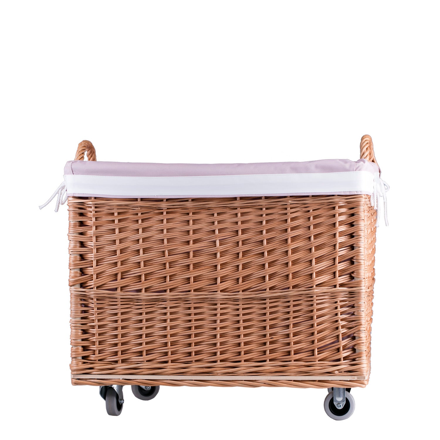 Salux wiklinowy koszyk z różowym obszyciem i kółkami TheWickerStories
