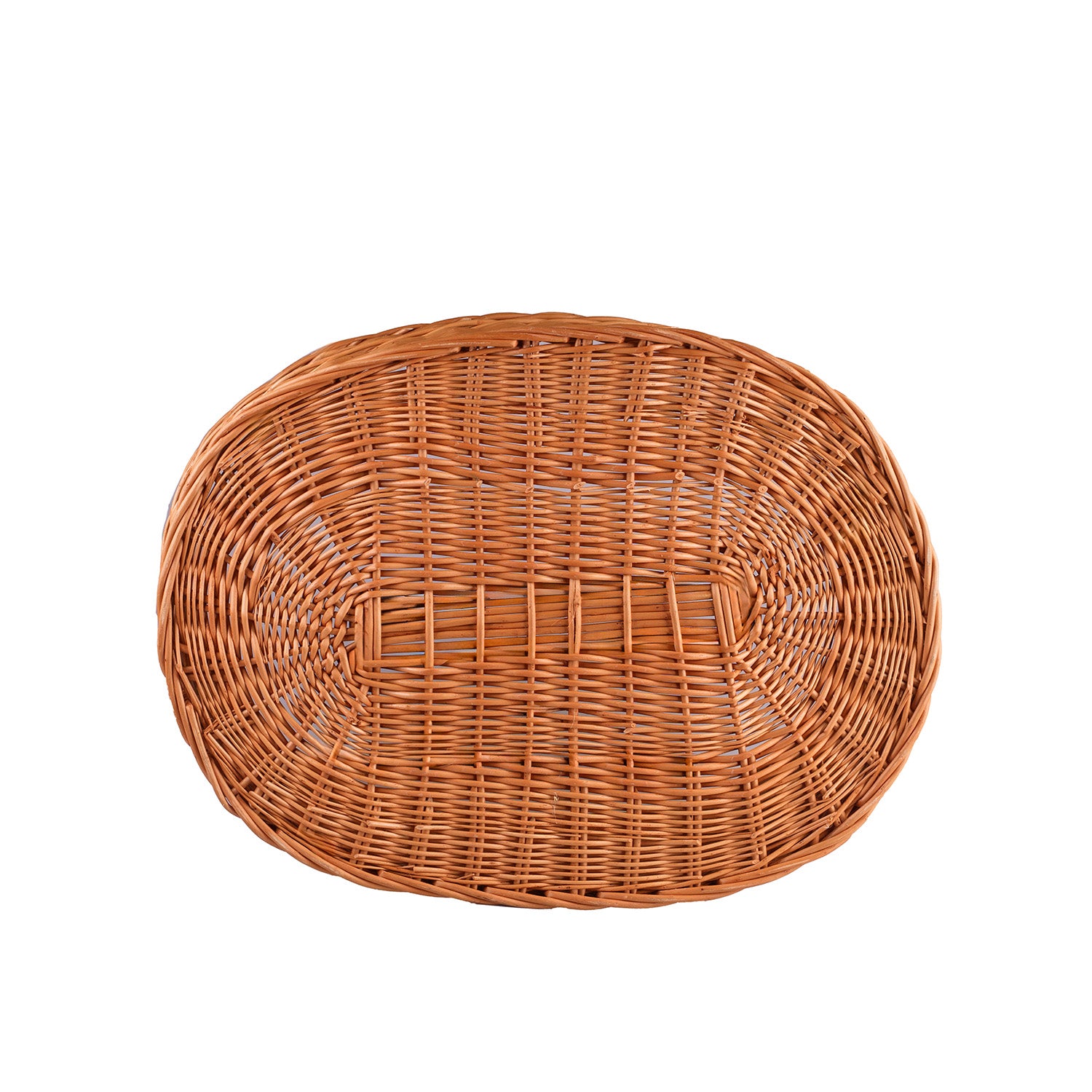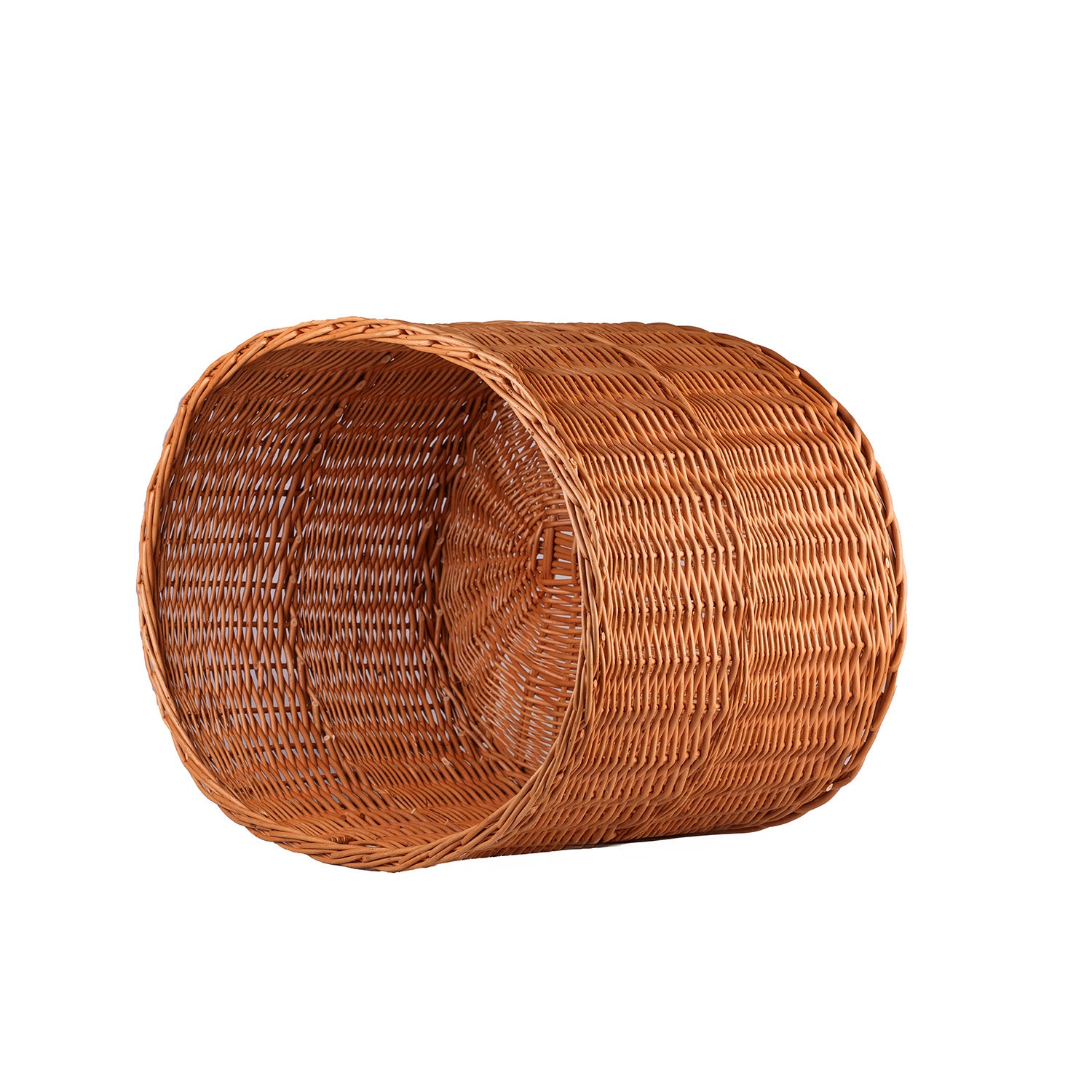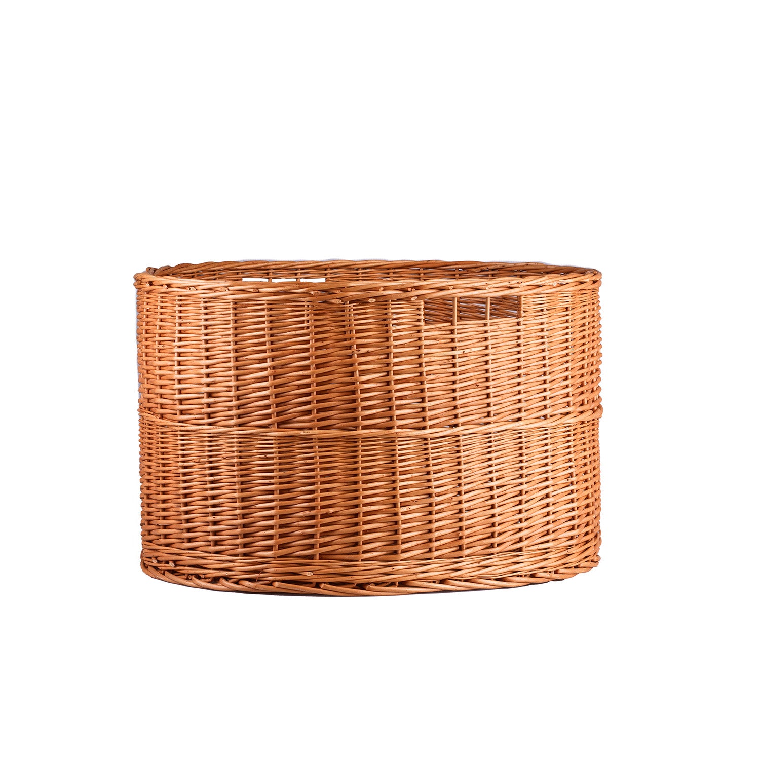 Owalny kosz wiklinowy ma klasyczną, otwartą formę, która pięknie eksponuje zawartość bez zasłaniania jej krawędziami. Naturalny, miodowy odcień i równy, staranny splot nadają mu ciepły, ponadczasowy wygląd. Krawędź została dokładnie wykończona i usztywniona, a gładkie pręty zapewniają komfort użytkowania.