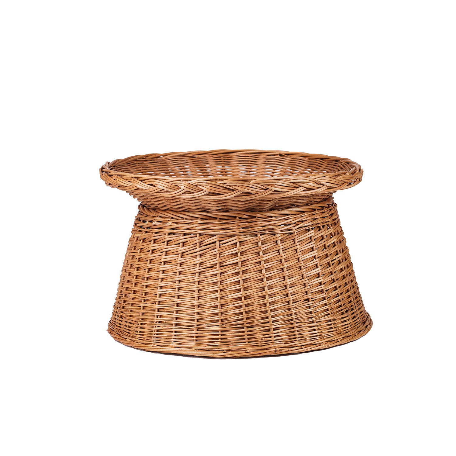 Neutralna forma pasuje zarówno do stylu skandynawskiego, jak i rustykalnego. Utrzymanie w czystości jest proste: przetrzyj wilgotną ściereczką i pozostaw do wyschnięcia. To funkcjonalny stojak ekspozycyjny z wikliny, który łączy estetykę i codzienną wygodę. Wymiary: misa: Ø34/57 H:10 (cm); podstawa: Ø43/57 H:28 (cm); wysokość całkowita; 38 (cm).