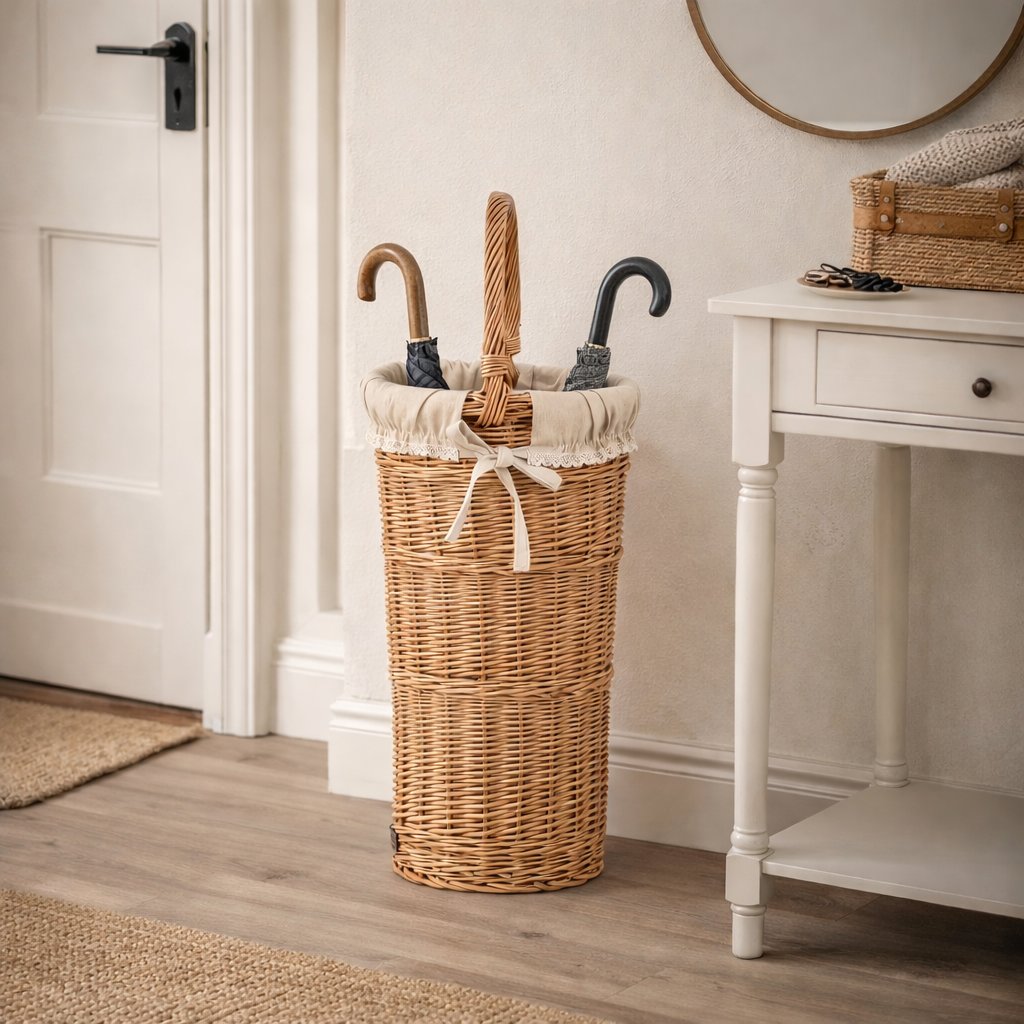 Vulpes wiklinowy kosz na parasole z beżowym obszyciem TheWickerStories- Zamów dziś – wysyłka w ciągu 3 dni roboczych