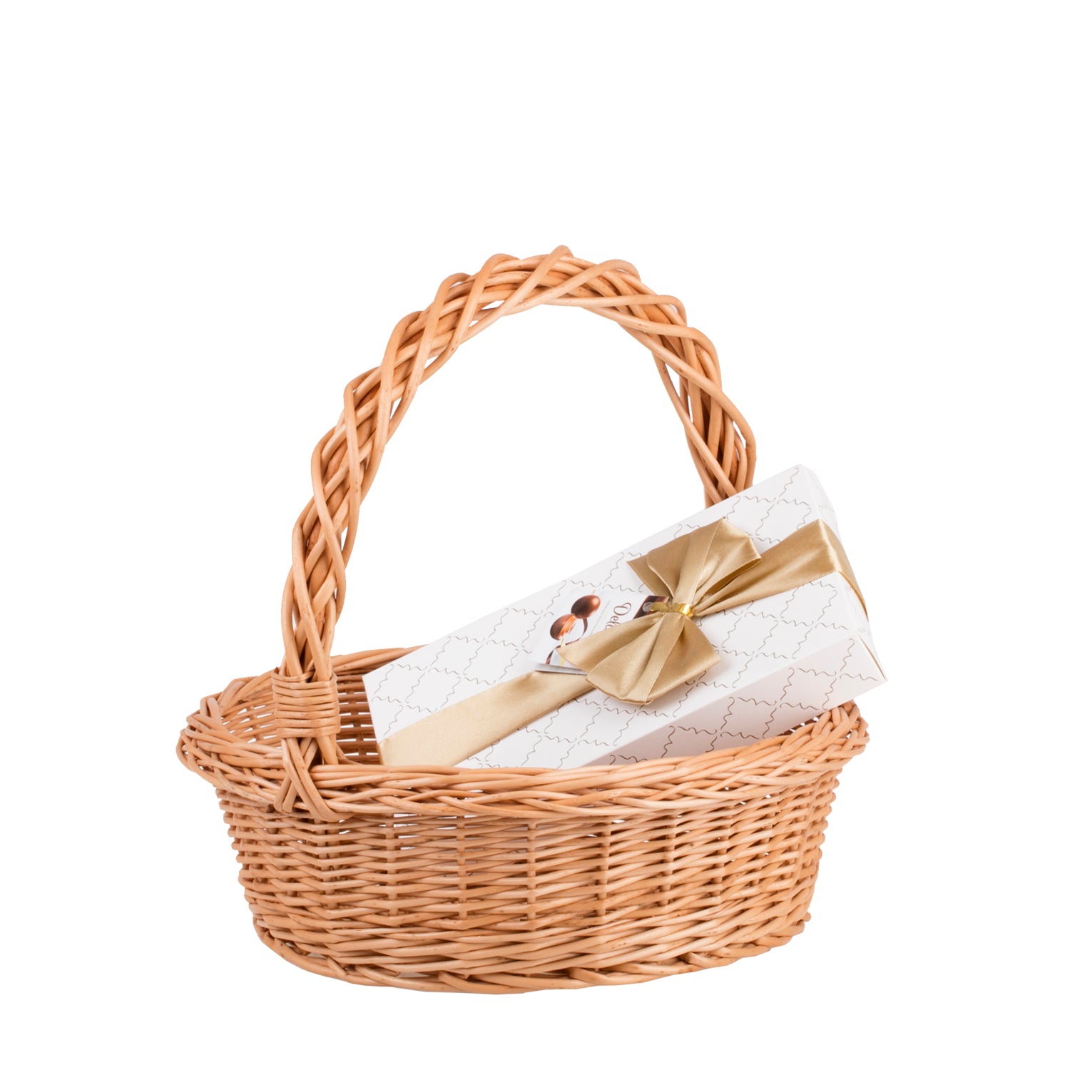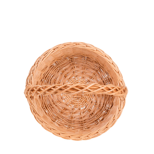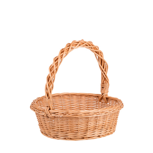 To doskonały wybór jako kosz wielkanocny – okrągły kształt, proste pionowe ścianki oraz elegancki, ozdobnie wykończony rant pięknie eksponują zawartość: pisanki, słodycze, świąteczne dekoracje czy drobne upominki. Dekoracyjny pałąk pełni funkcję rączki, ułatwiając przenoszenie i wręczanie kosza jako prezentu.