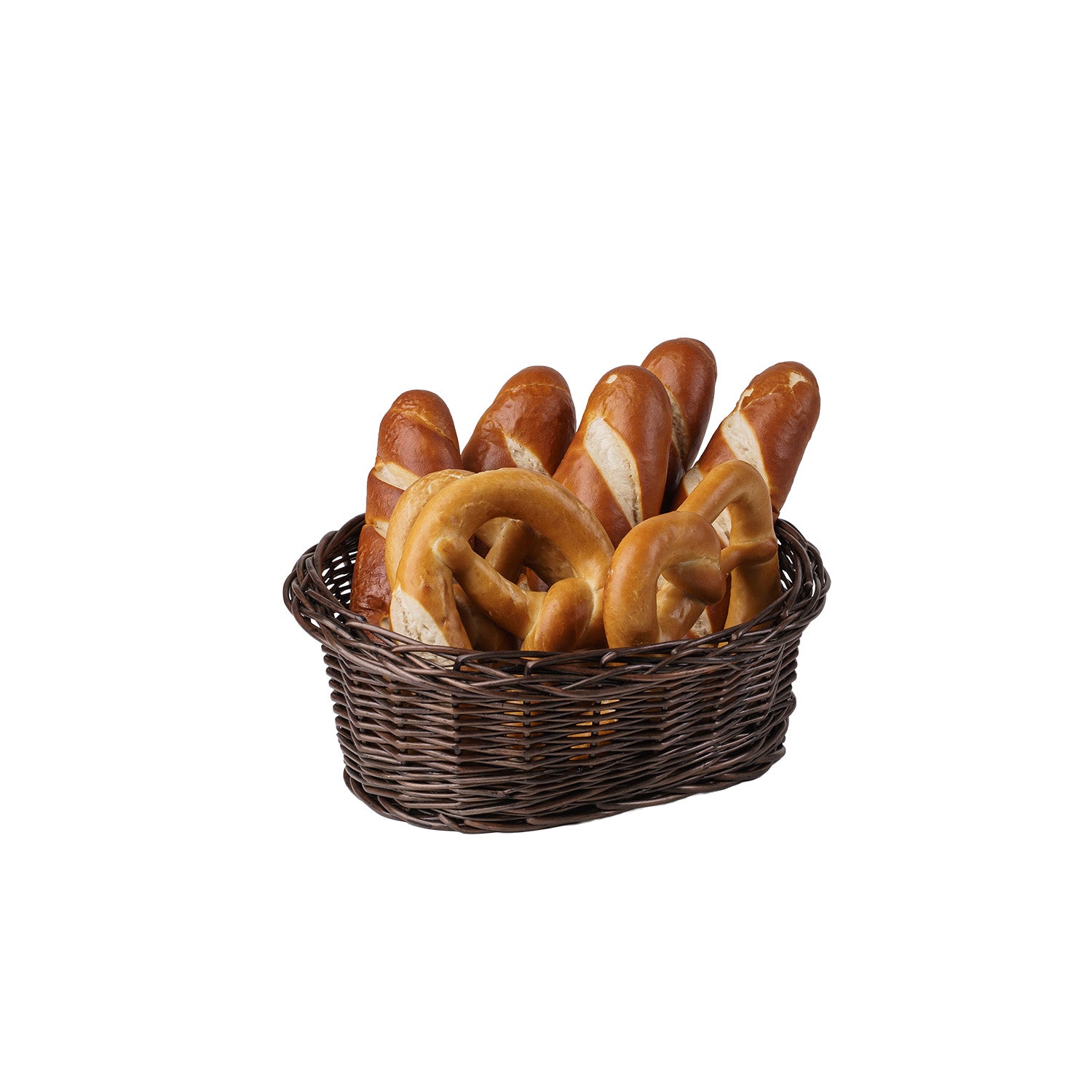 Komplet pięciu owalnych koszy wiklinowych w kolorze ciemnego brązu to spójna, elegancka baza do ekspozycji pieczywa, ciastek czy innych towarów w piekarniach. Każdy kosz ma gęsty, równy splot i gładko wykończony rant, co przekłada się na estetykę oraz wygodę codziennego użycia. Kolor wenge podkreśla naturalny charakter wypieków i pasuje do nowoczesnych oraz klasycznych wnętrz.