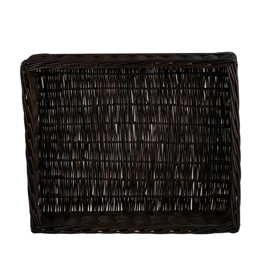 An elegant rectangular wicker basket-style pet bed that combines natural charm with homely warmth. The brown-toned basket features an even, attractive weave and carefully finished edges. The interior is lined with soft padding and comes with a matching cushion. The cushion is soft and its surface is waterproof.