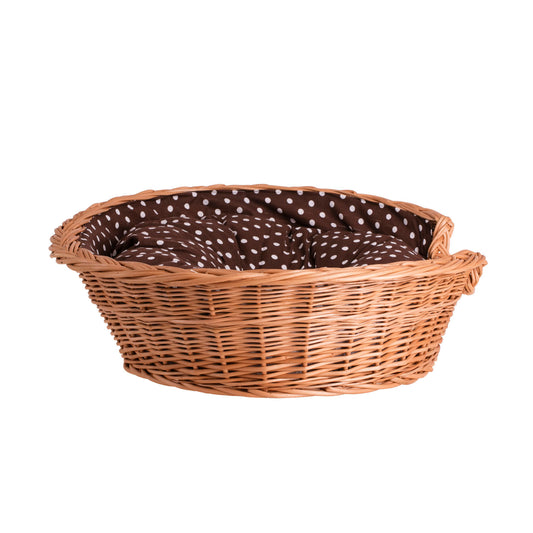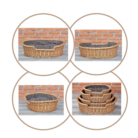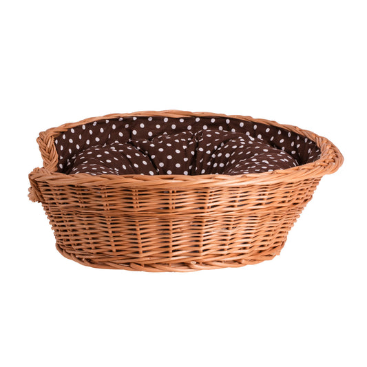 Esmira wicker pet bed for dogs and cats with brown cushion TheWickerStories- Order today - dispatch within 3 business days