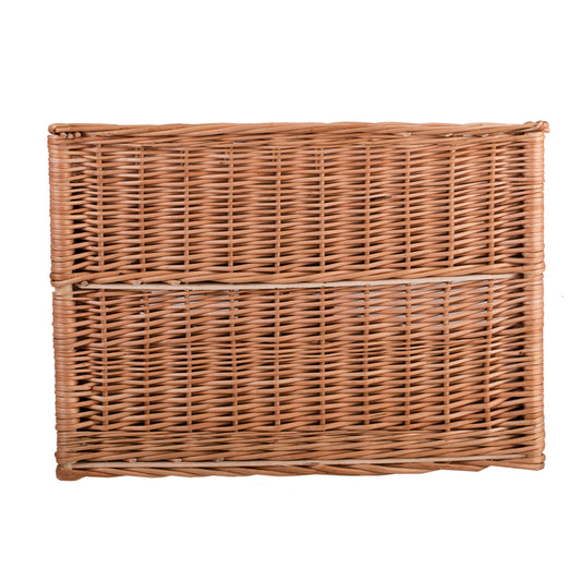 This two-level wicker cat house delights with its natural finish and even weave. The rectangular shape contains a cozy lower den with a wide entrance and a small window, while the top offers an open terrace for naps and surveillance. The subtle sheen of the wicker warms the interior, and two soft gray cushions fitted to both levels complete the look. The natural shade of the weave blends with most interior styles.