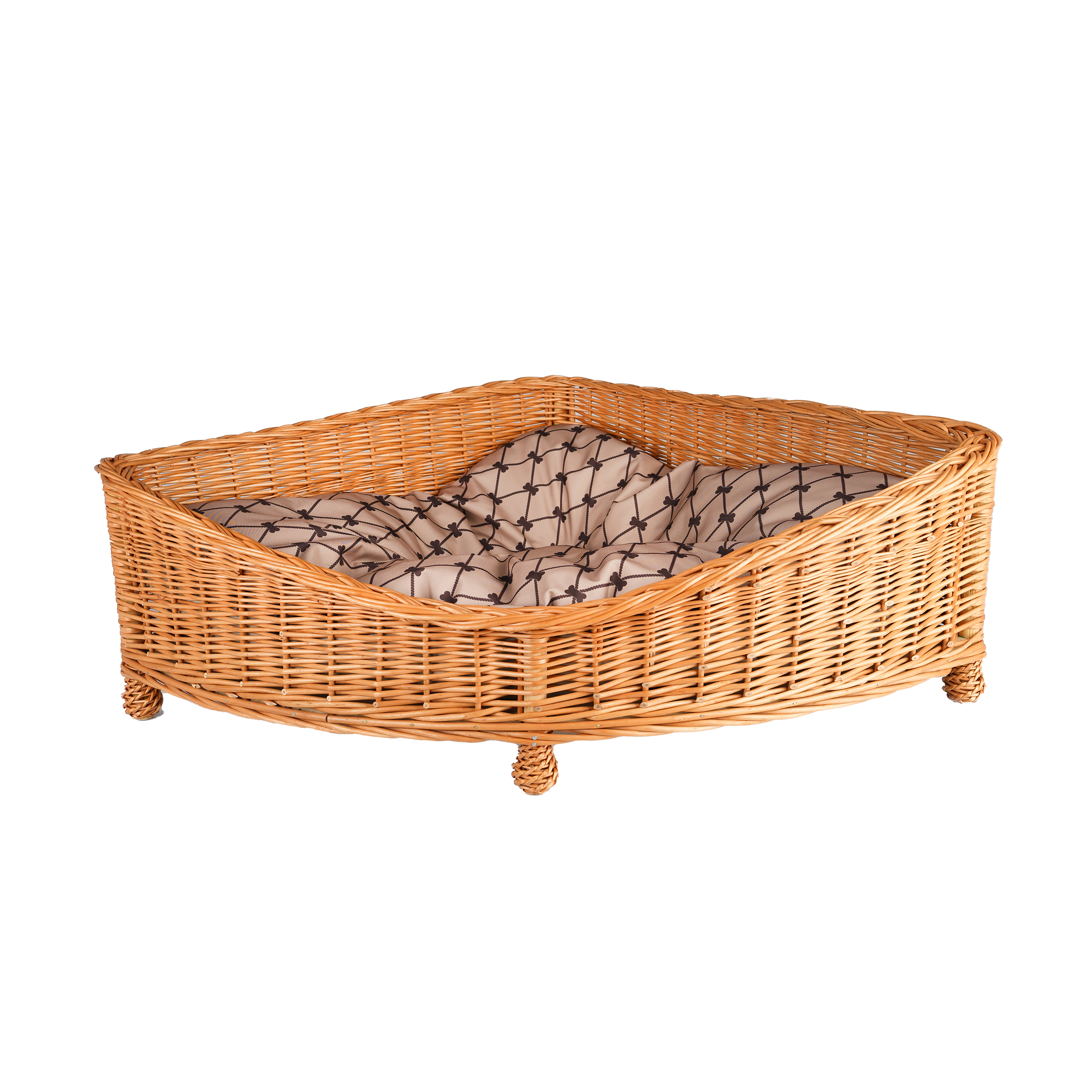 Evania wicker corner pet bed for dogs and cats with cushion and legs TheWickerStories- Order today - dispatch within 3 business days