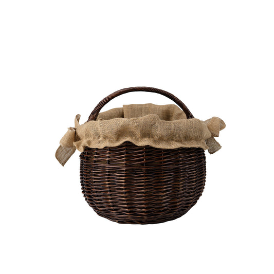 The jute trim limits bark shedding, protects the bottom and floor from small splinters, and gives the arrangement a cozy character. The basket is also great for storing and collecting fruit, vegetables or nuts. Dimensions approx. 62×46 cm; height 25/38 cm (without/with stiff handle) provide large capacity while remaining manageable. The trim is not suitable for machine washing but is easy to care for — regular vacuuming or dry brushing is sufficient, and for minor stains gently wipe with a damp cloth and mild detergent and leave to dry.