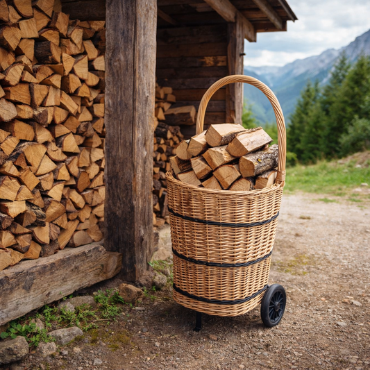 Favoren mobile wicker basket for transporting wood and goods 1041ss TheWickerStories