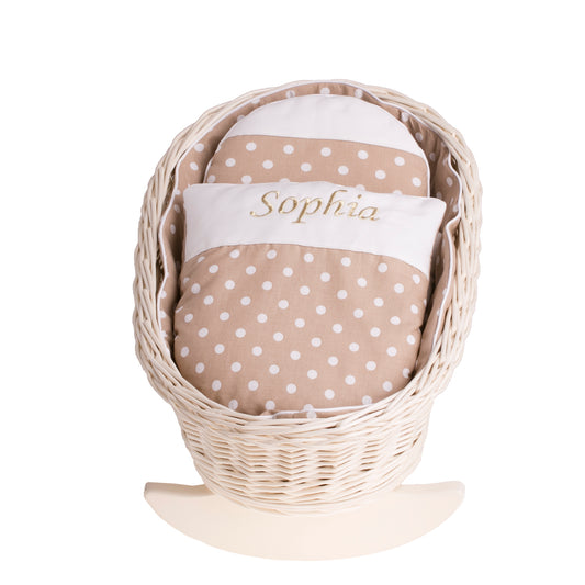 Mimi wicker cradle for dolls with personalization, beige lining, pillow and duvet TheWickerStories