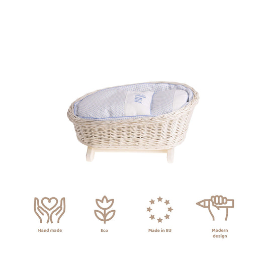Mimi wicker cradle for dolls with personalization, blue lining, pillow and duvet TheWickerStories- Order today - dispatch within 3 business days