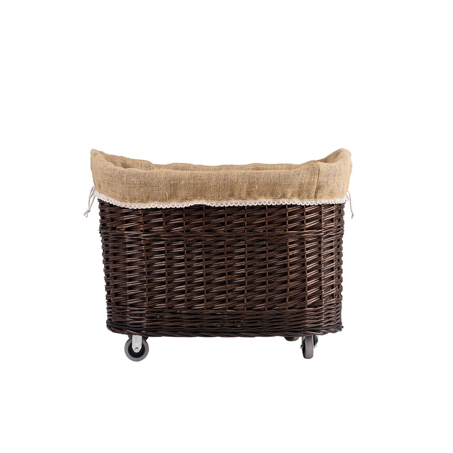 Practical locking casters allow easy movement of the basket and secure placement where desired. Raised, decorative handles make maneuvering easier even when fully loaded. The combination of mobility and solid form makes the basket a convenient and functional container for firewood. Basket dimensions: 65×47 H:47/50 (cm).