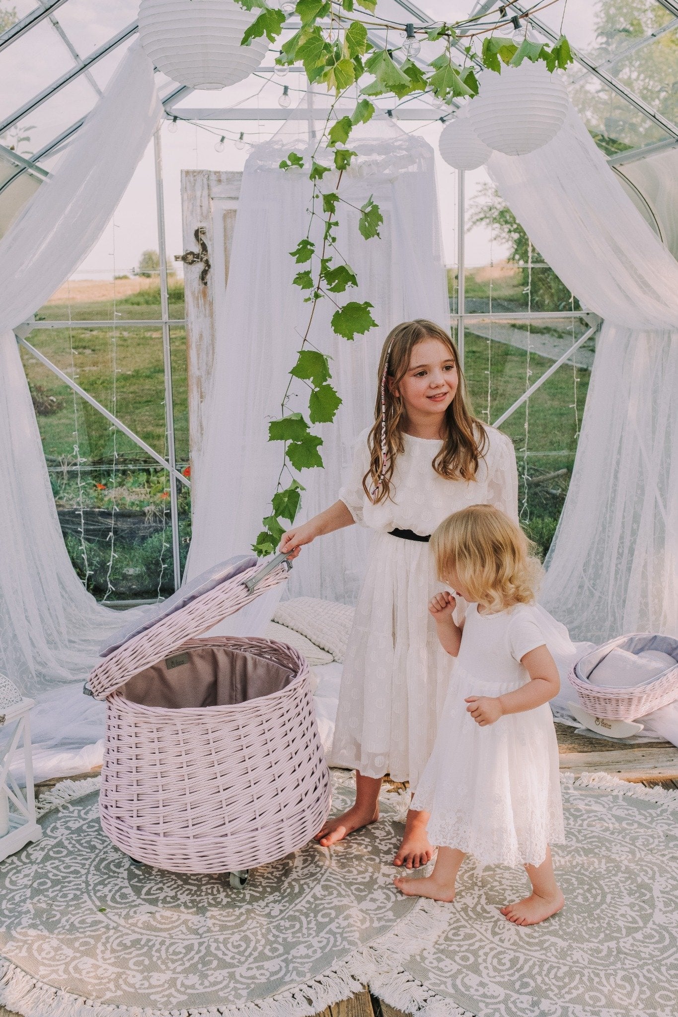 It also works as an attractive storage basket for blankets or craft play accessories. The pink wicker warms the décor, making the trunk suitable for nurseries as well as modern, Scandinavian and boho interiors. On the sides of the basket there are elegant leather straps that not only provide a stylish detail but also make comfortable pulling and moving the trunk easier. The cover is removable, so it can be machine washed at 30°C, while the basket itself only needs to be wiped with a damp cloth.