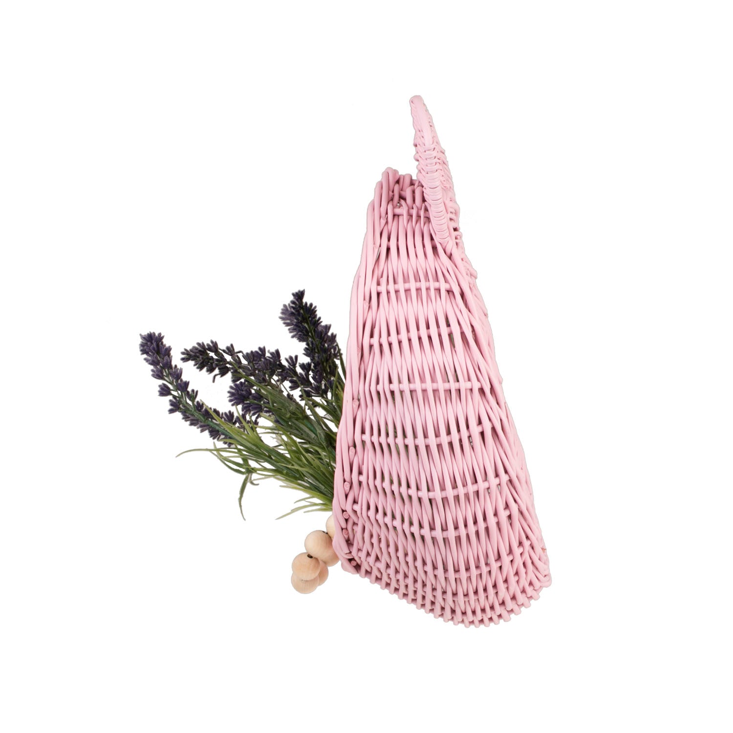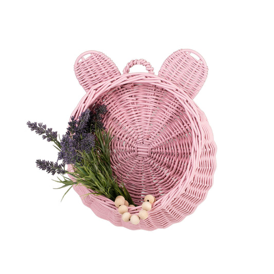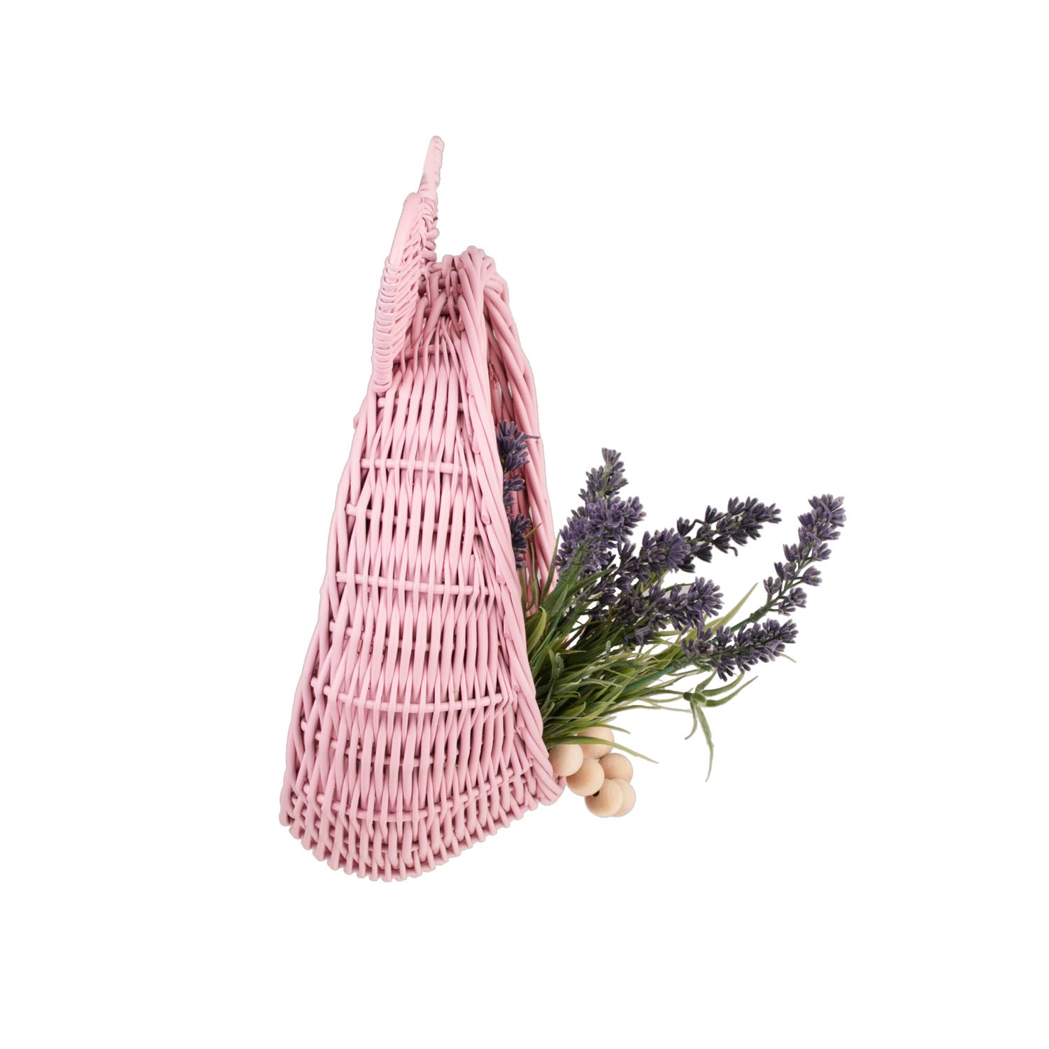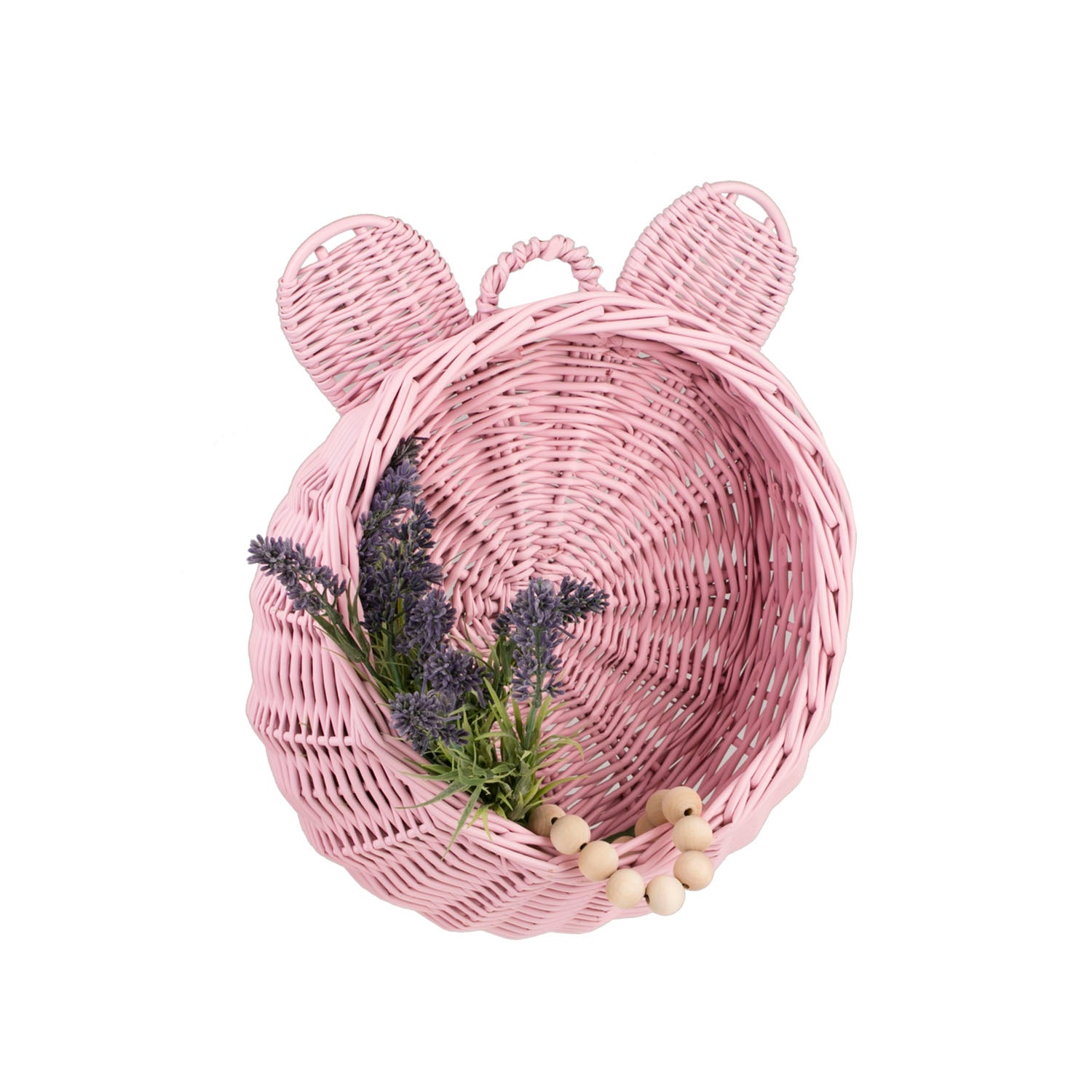 Den ömt hängande pilkorgen förtrollar med sin subtila pastellrosa nyans och sitt omsorgsfulla flätverk. Den runda skålen med en dekorativ, lätt vågig kant och två rundade utbuktningar bildar ett glatt nallemotiv. Överst finns en praktisk ögla som gör det enkelt att hänga korgen på en krok. Kanterna är jämnt avslutade och korgen behåller en behagligt mjukt, rundad profil.